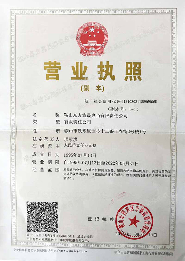 業務范圍公司經營范圍: 質押典當業務、房地產抵押典當業務、限額內絕當物品的變賣、典當物品的鑒定評估及咨詢服務 注冊經營年限: 1995年7月13日---2013年7月13日歡迎您與我們合作,共創財富未來! 房產典當產權房、商業網點均可到公司辦理質押貸款。歡迎光臨!